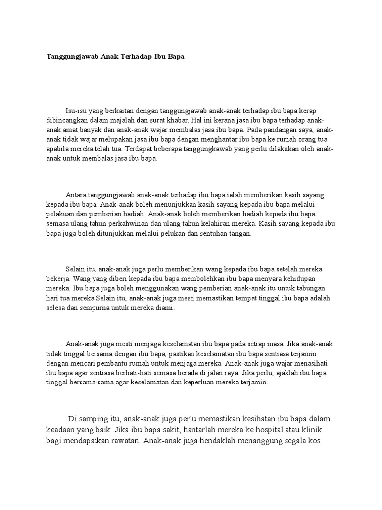 Tanggungjawab Anak Terhadap Ibu Bapa Oh Media from ohmedia.my Salah satu tanggung jawab ibu terhadap anaknya adalah membimbing anaknya ke jalan yang benar ataupun tingkah laku yang baik. Tanggungjawab anak kepada ibu bapa. Justeru menjadi tanggungjawab anak memberi nafkah atau bantuan kewangan kepada ibu bapa. Dalam konsep modern, seorang ayah turut memberikan kontribusi penting bagi. Bagaimana tanggung jawab anak sulung laki laki terhadap ibu dan adik. Kita sebagai anak ada tanggungjawab besar yang diamanahkan oleh allah swt untuk menjaga ibu bapa kita hingga akhir hayat. Tentu kita mendapat jawaban yang fariatif. Sumbangan itu tidak seberapa berbanding yang dibelanjakan ibu bapa untuk membesar dan mendidik anak.